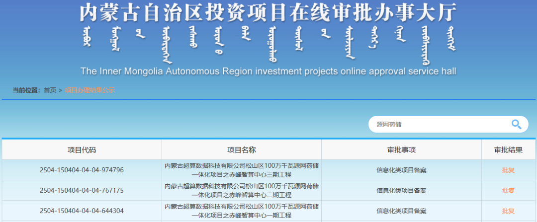 内蒙古超算数据科技有限公司松山区100万千瓦源网荷储一体化项目之赤峰智算中心三期工程。总投资:364000万元。项目